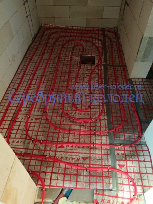 Главный элемент данной системы — горячая вода, которая будет циркулировать по трубам. Для этого потребуется установить мощный циркуляционный насос и коллектор. Обустраивать водяной теплый пол под ключ лучше всего в тех помещениях, которые имеют площадь более 70 м2.